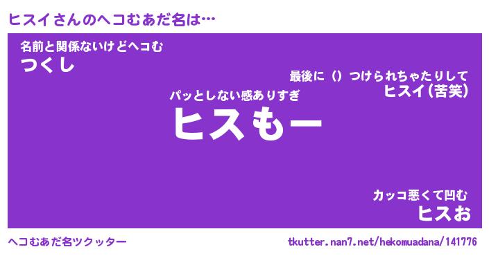 | ファンタジー風あだ名 | 『ヒスフェル』『エターナルヒスイー』 |