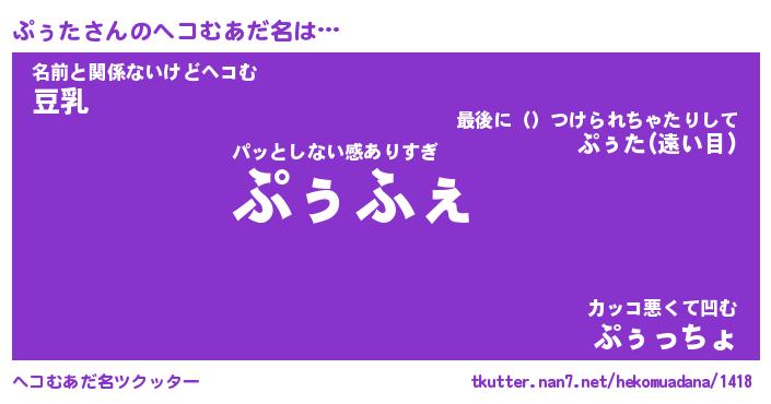 | 意味不明あだ名 | 『ペロリンぷぅた』『ぷぅたフォーエバー』 |