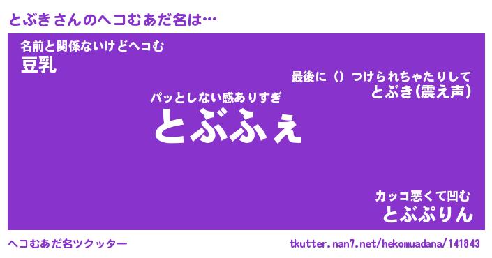 | 意味不明あだ名 | 『ペロリンとぶき』『とぶきフォーエバー』 |