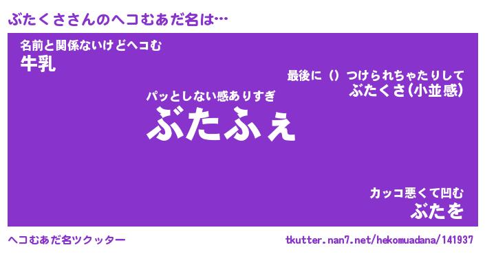 | ファンタジー風あだ名 | 『ブタフェル』『エターナルブタクサー』 |