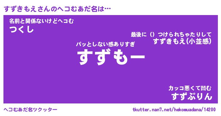 | ヒーロー風カッコイイあだ名 | 『スーパースズキモエ』『魔戒騎士スズ』 |