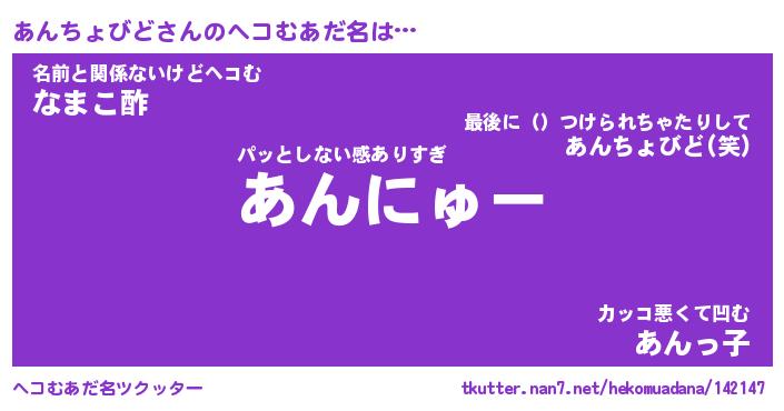 | ポケモン風あだ名 | 『アンチュウ』『アンチダネ』 |