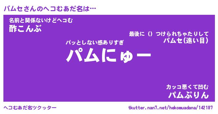| 男性向けラノベタイトル風あだ名 | 『パムセの憂鬱』 |