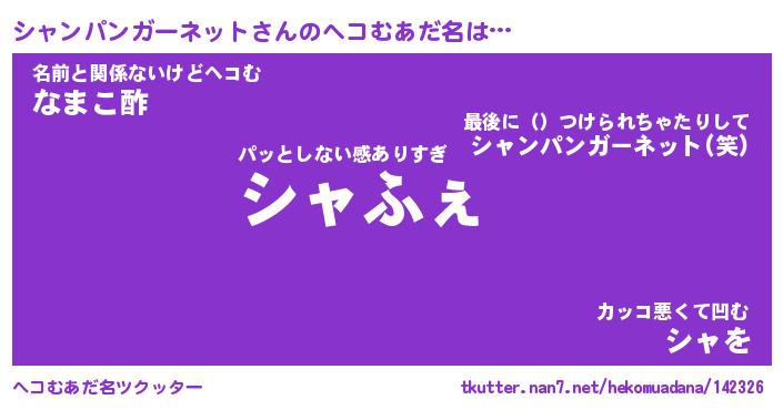 | ツイッター | シャンパンガーネットさんのツイッターID『namakemono_star』 |