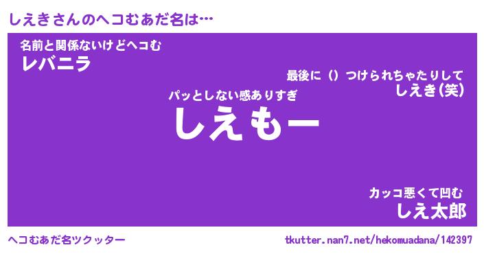 | 意味不明あだ名 | 『ペロリンしえき』『しえきフォーエバー』 |
