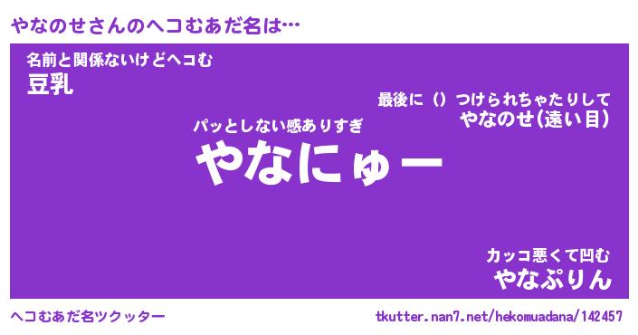 | 意味不明あだ名 | 『ペロリンやなのせ』『永久保存やなのせ』 |