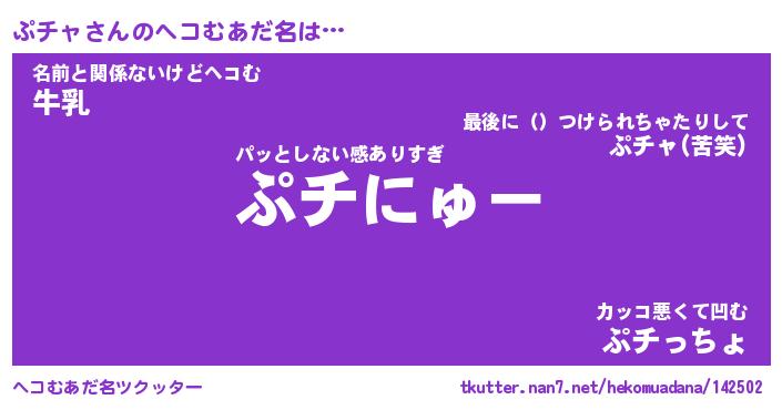 | ヒーロー風カッコイイあだ名 | 『スーパープチャ』『ウルトラぷチャマン』 |