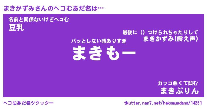 | 男性向けラノベタイトル風あだ名 | 『まきかずみの憂鬱』 |
