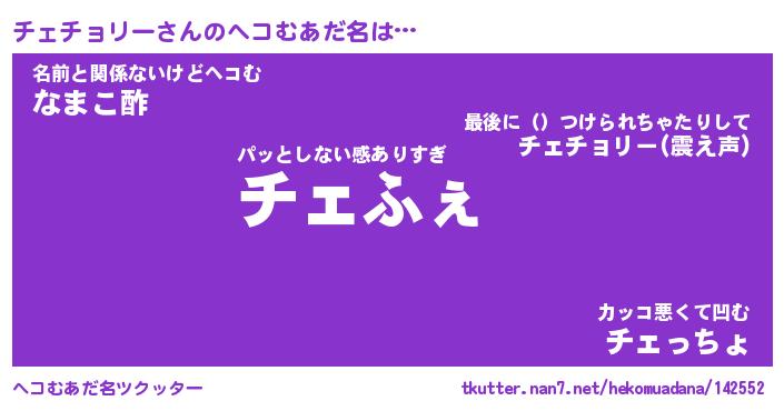 | 2回繰り返すあだ名 | 『チェチェ』『チチェェ』 |