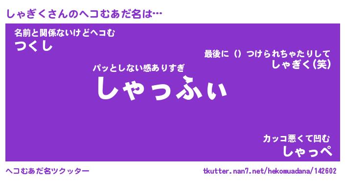 | ヒーロー風カッコイイあだ名 | 『スーパーシャギク』『天弓騎士シャ』 |
