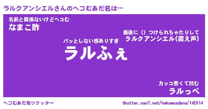 | 意味不明あだ名 | 『ペロリンラルクアンシエル』 |
