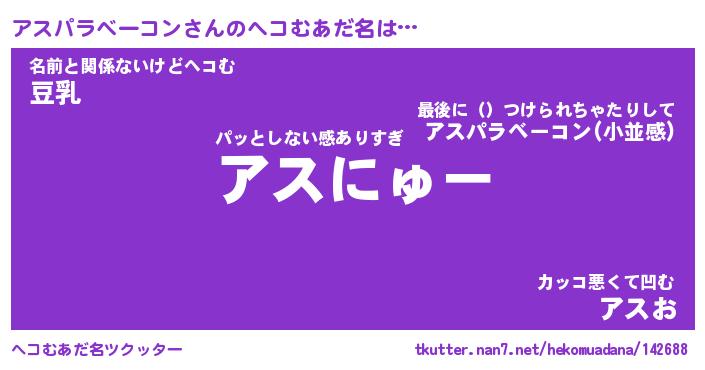 | 意味不明あだ名 | 『ペロリンアスパラベーコン』 |