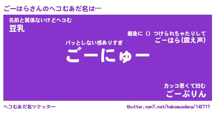 | ポケモン風あだ名 | 『ゴーチュウ』『ゴーハダネ』 |