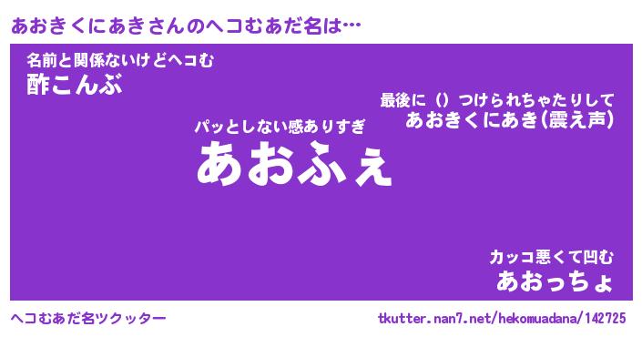 | ヒーロー風カッコイイあだ名 | 『スーパーアオキクニアキ』 |