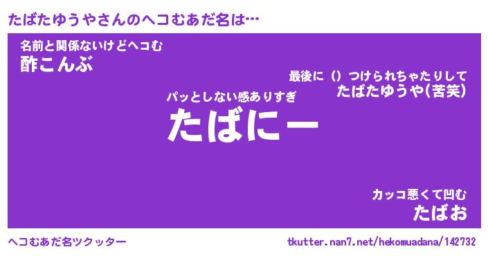 | ヒーロー風カッコイイあだ名 | 『スーパータバタユウヤ』『魔戒騎士タバ』 |