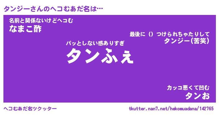 | ファンタジー風あだ名 | 『タンフェル』『エターナルタンジーー』 |