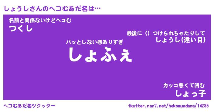 | 意味不明あだ名 | 『ペロリンしょうし』『永久保存しょうし』 |