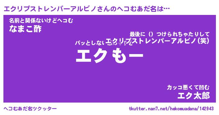 | 男性向けラノベタイトル風あだ名 | 『エクリプストレンパーアルビノアートオンライン』 |