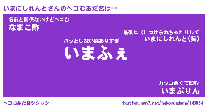 | 恥ずかしいあだ名 | 『プリティーいまにしれんと』『いまちん』 |