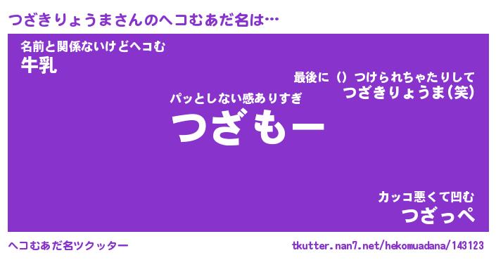 | 恥ずかしいあだ名 | 『プリティーつざきりょうま』『つざちん』 |