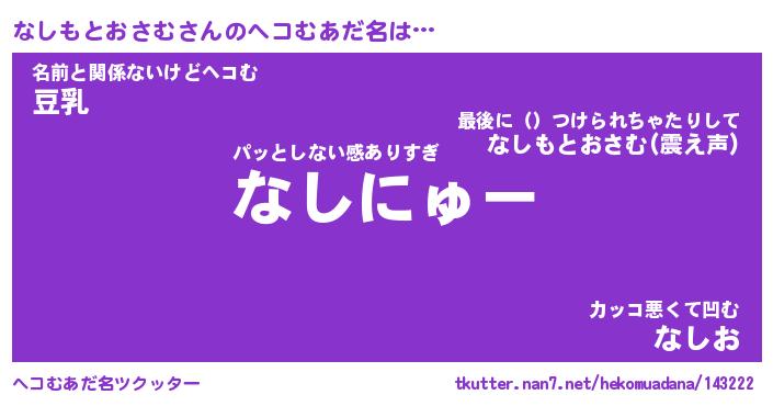| 肩書あだ名 | 『なしもとおさむ店長』 |
