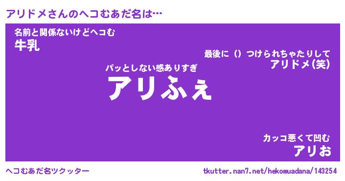 | ファンタジー風あだ名 | 『アリフェル』『エターナルアリドメー』 |
