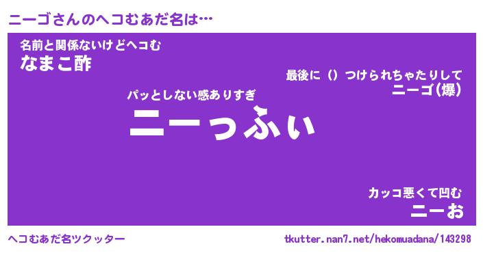 | ポケモン風あだ名 | 『ニーチュウ』『ニーゴダネ』 |