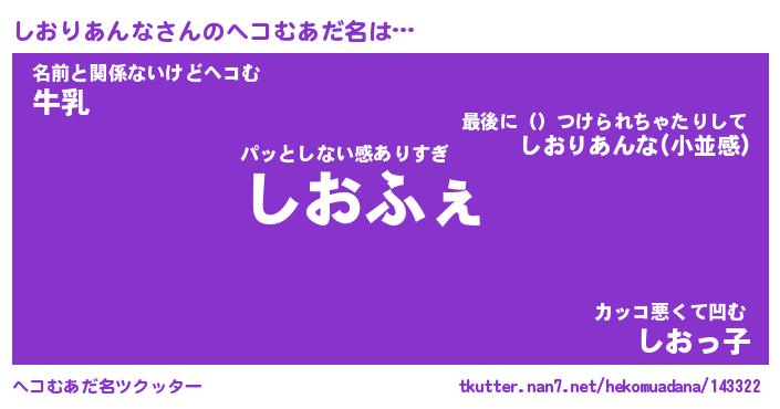 | 意味不明あだ名 | 『ペロリンしおりあんな』 |