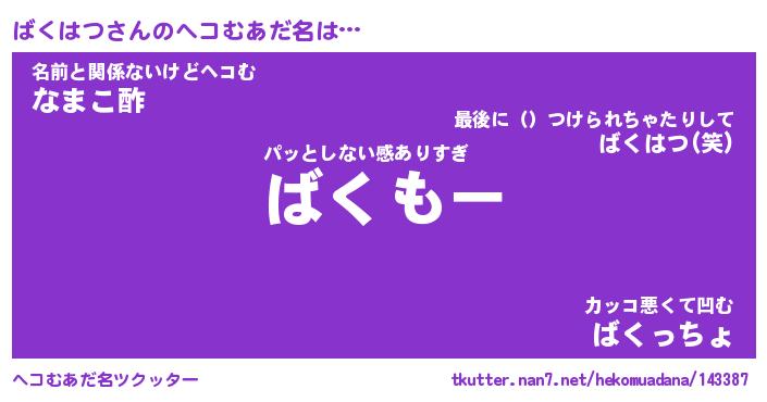 | ヒーロー風カッコイイあだ名 | 『スーパーバクハツ』『暗黒騎士バク』 |
