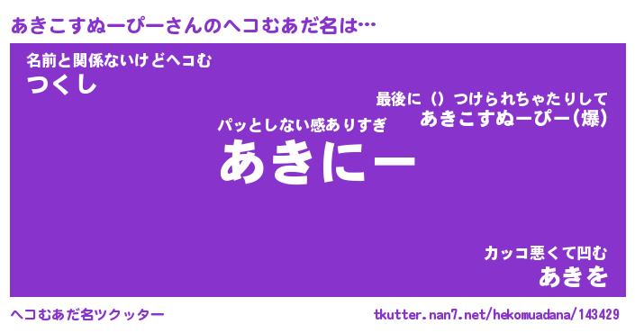 | 欧米人風あだ名 | 『マイケルあきこすぬーぴー』 |