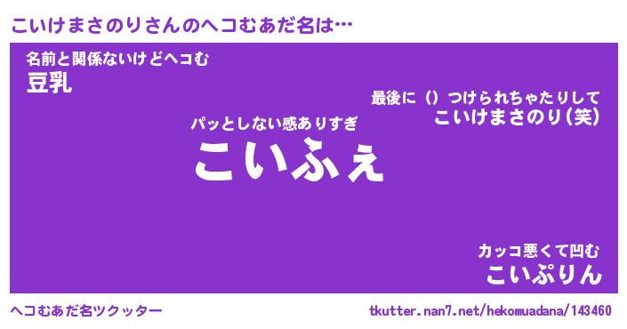 | ヒーロー風カッコイイあだ名 | 『スーパーコイケマサノリ』 |