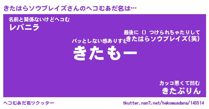 | 伝説のあだ名 | 『封印されし傭兵きたはらソウブレイズ』 |