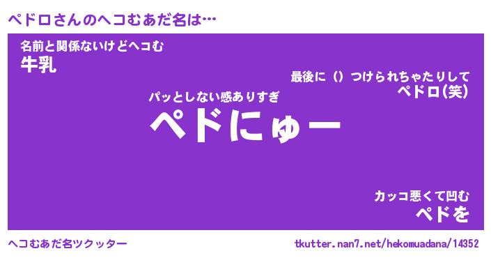 | ファンタジー風あだ名 | 『ペドフェル』『エターナルペドロー』 |