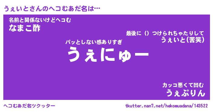 | ポケモン風あだ名 | 『ウェチュウ』『ウェイダネ』 |