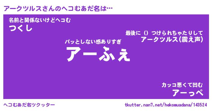 | 男性向けラノベタイトル風あだ名 | 『アークツルスの憂鬱』 |