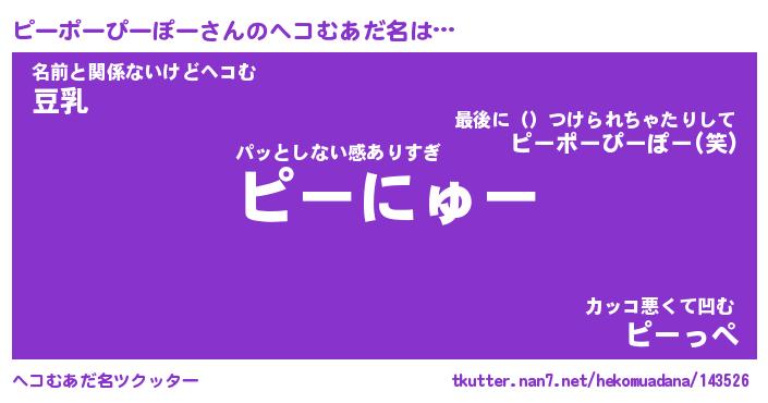 | ポケモン風あだ名 | 『ピーチュウ』『ピーポダネ』 |