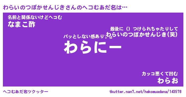 | 意味不明あだ名 | 『ペロリンわらいのつぼかせんじき』 |
