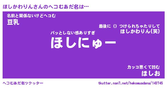 | ヒーロー風カッコイイあだ名 | 『スーパーホシカワリン』『天弓騎士ホシ』 |