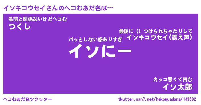 | 男性向けラノベタイトル風あだ名 | 『イソキコウセイの憂鬱』 |