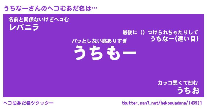 | ファンタジー風あだ名 | 『ウチフェル』『エターナルウチナーー』 |