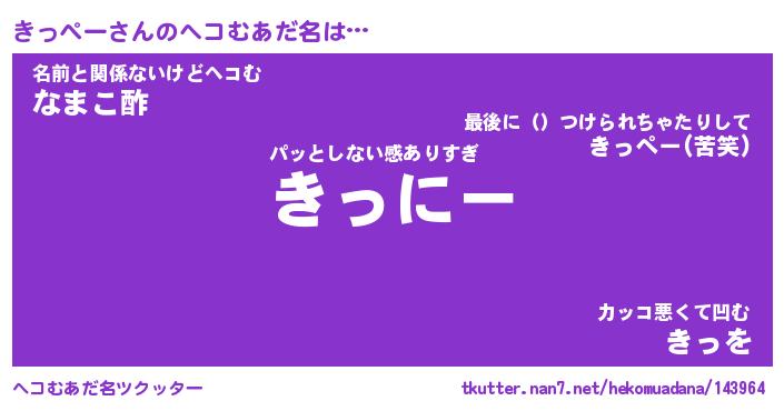 | 意味不明あだ名 | 『ペロリンきっぺー』『永久保存きっぺー』 |