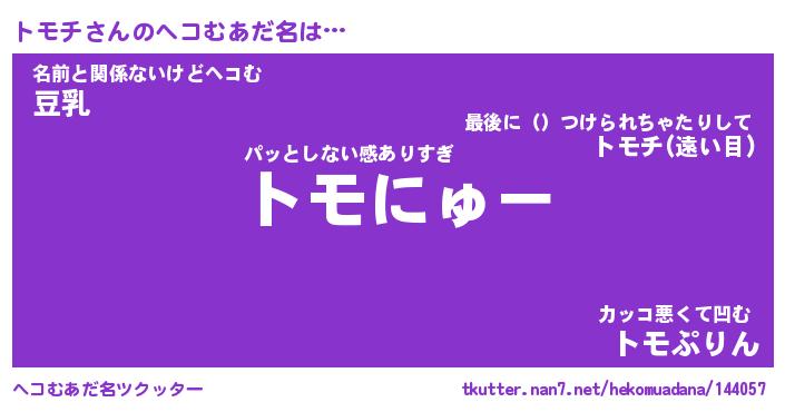 | 意味不明あだ名 | 『ペロリントモチ』『トモチフォーエバー』 |