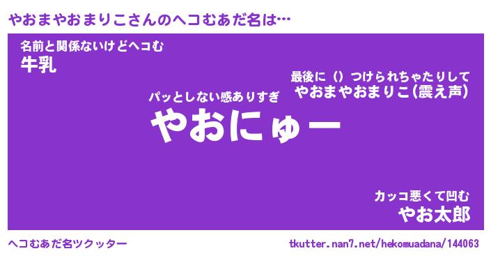 | 2回繰り返すあだ名 | 『やおやお』『ややおお』『にたにた』 |