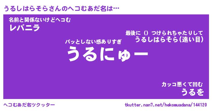 | 2回繰り返すあだ名 | 『うるうる』『ううるる』『うるうる』 |