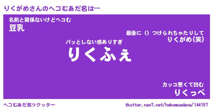 | 恥ずかしいあだ名 | 『プリティーりくがめ』『りくっちょ』 |
