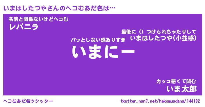 | 胡散臭い通販商品みたいなあだ名 | 『億万長者になれるブレスレット…その名も「いまはしたつや」』 |