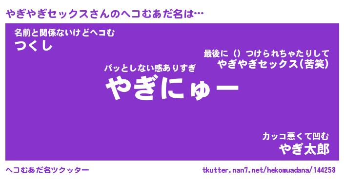 | 恥ずかしいあだ名 | 『プリティーやぎやぎセックス』 |