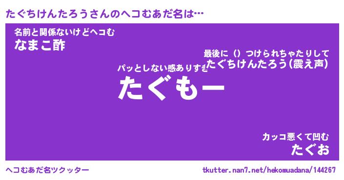 | 胡散臭い通販商品みたいなあだ名 | 『モテモテ間違いなし霊験あらたかなお札…その名も「たぐちけんたろう」』 |
