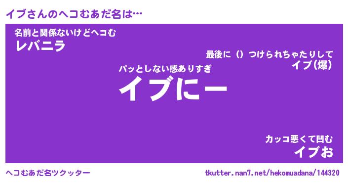 | ポケモン風あだ名 | 『イブチュウ』『イブダネ』『ヒイブ』 |