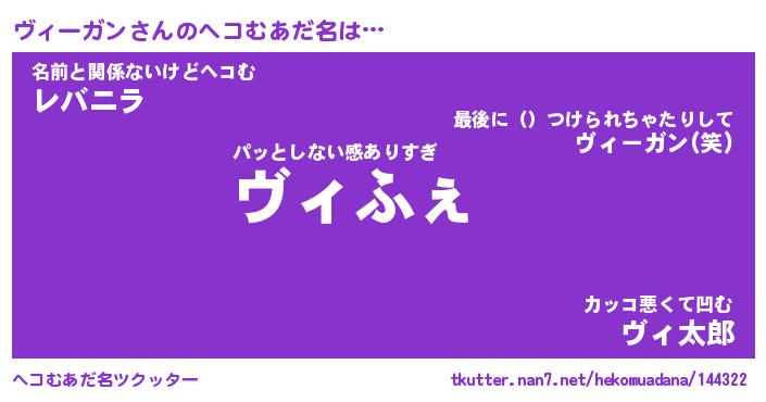 | ヒーロー風カッコイイあだ名 | 『スーパーヴィーガン』『天弓騎士ヴィ』 |